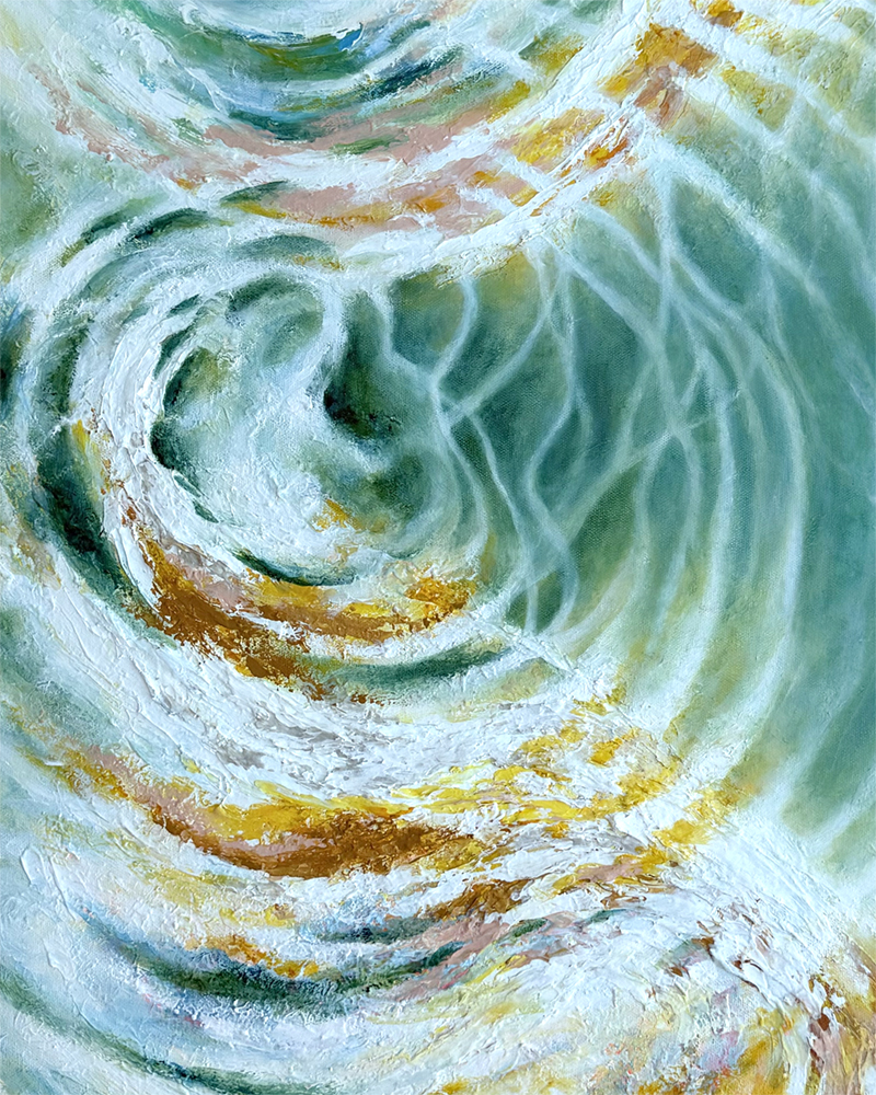 As the ripple bends and shifts, it reveals the presence of something greater than itself: a quiet authority that cannot be seen, yet is undeniably felt. In this, the work becomes a meditation on trust—on the unseen currents that lead us, even when we do not fully understand the way.